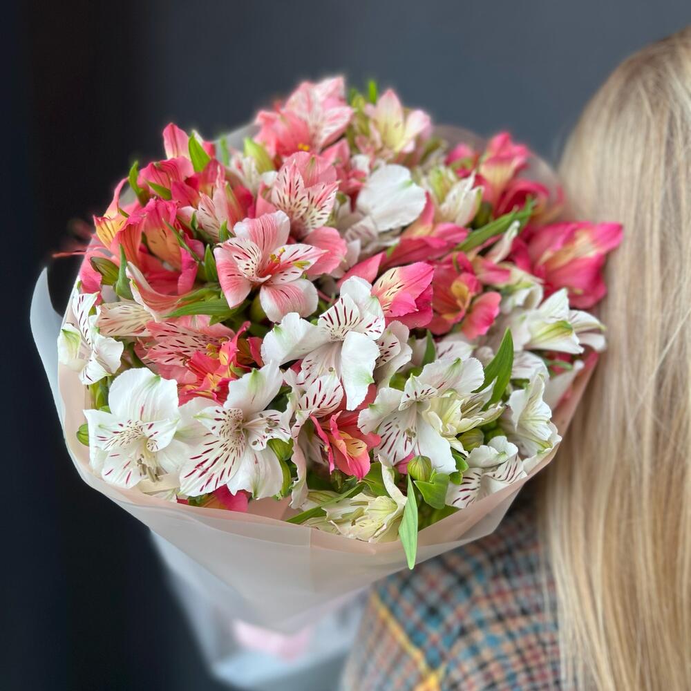 Альстромерия – 17 шт.Атласная лента – 1 шт.декоративная упаковка – 1 шт.