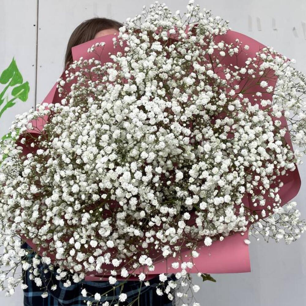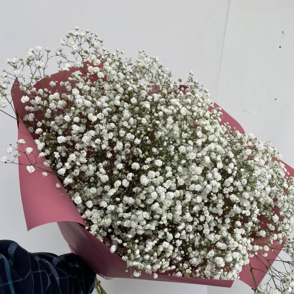 Упаковка – 1 шт.Лента атласная – 1 шт.гипсофила белая – 11 шт.