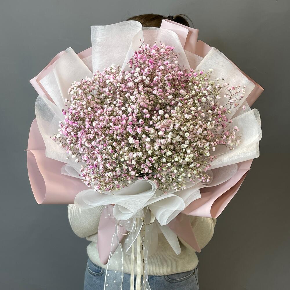 Гипсофила – 5 шт.Лента – 2 шт.Упаковка дизайнерская – 2 шт.