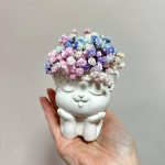 Открыточка с вашими пожеланиями – 1 шт. гипсофила радужная – 1 шт. кашпо из гипса ручной работы – 1 шт.
