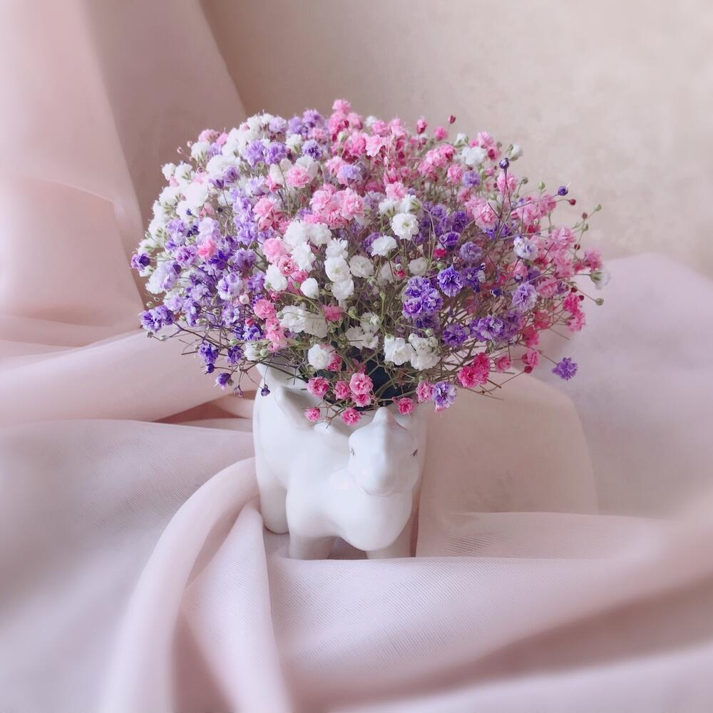 Радужная гипсофила в кашпо из керамики «Лисичка»