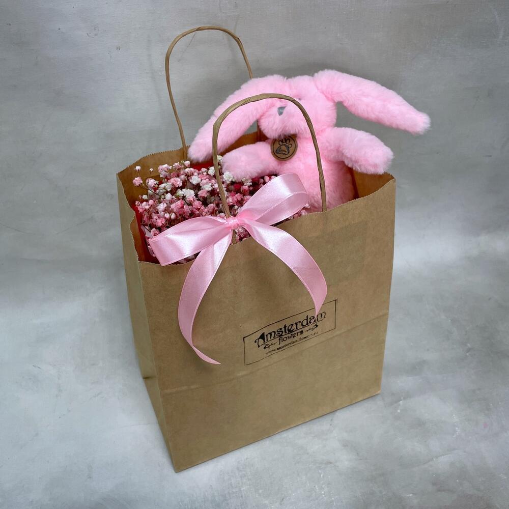 Гипсофила – 3 шт.Упаковка – 1 шт.игрушка зайчонок lapkin – 1 шт.Пакет крафт – 1 шт.