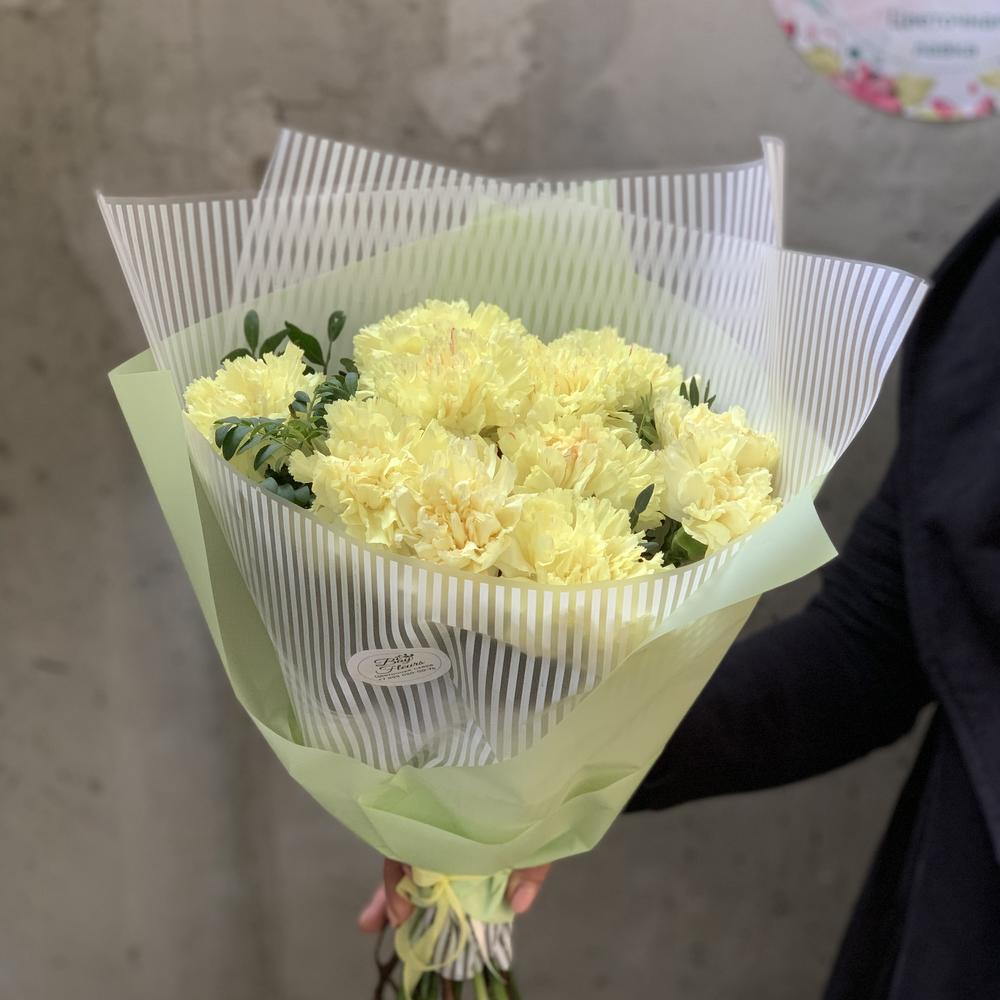 Гвоздика – 11 шт.Фисташка – 1 шт.Упаковка дизайнерская – 1 шт.Лента атласная – 1 шт.