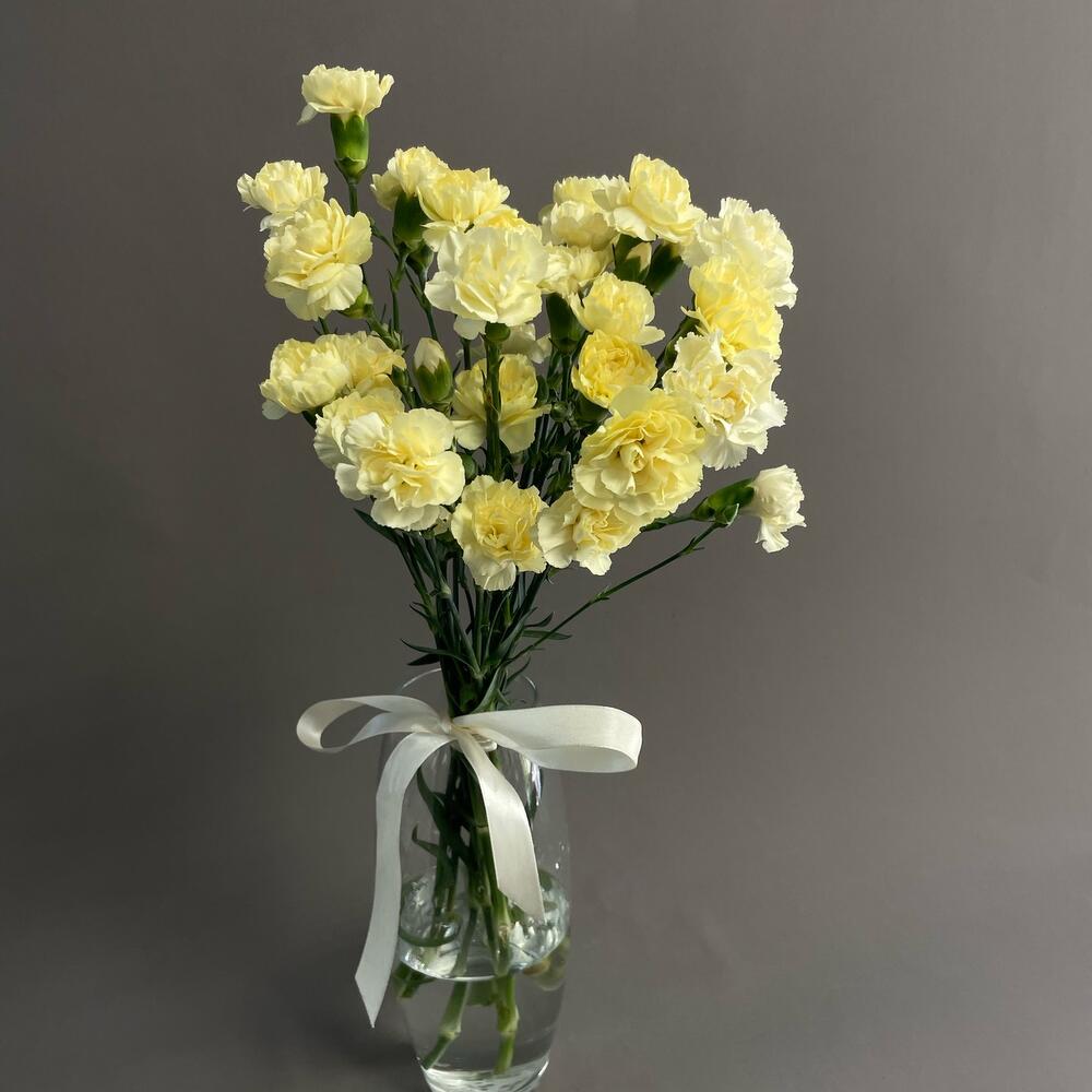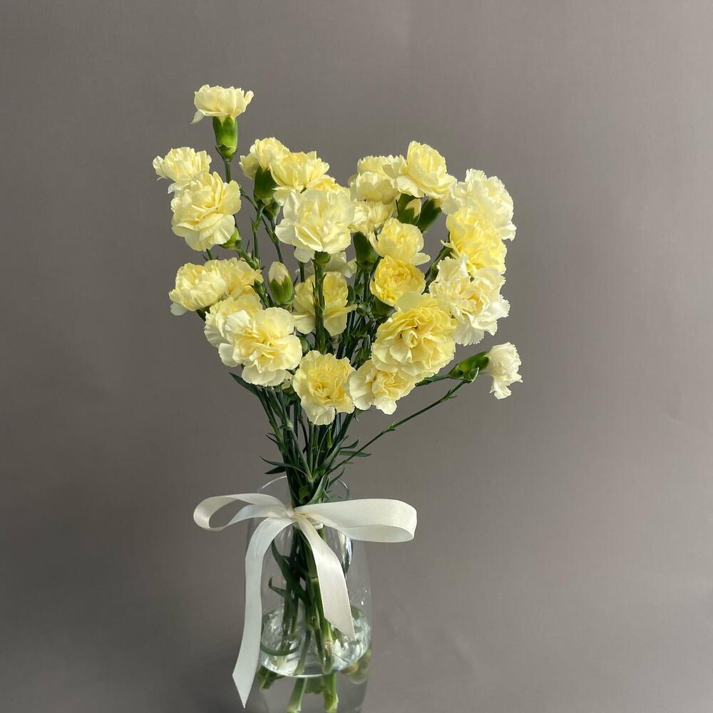 Домашний букет из 9 гвоздик яркого желтого цвета. Пушистые гвоздики создают радостное настроение. они не нуждаются в упаковке. Такой букет можно поставить в гостиную, на рабочий стол или в кухню. Гвоздики очень стильно выглядят и долго стоят