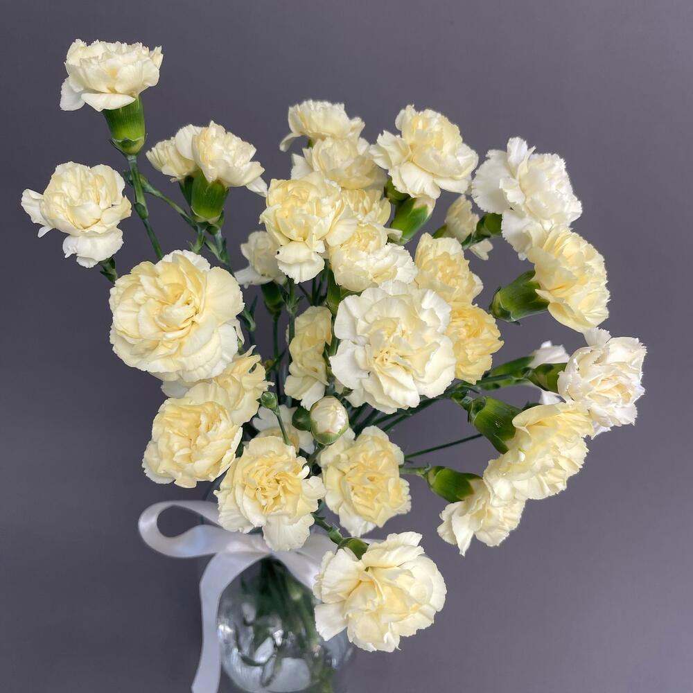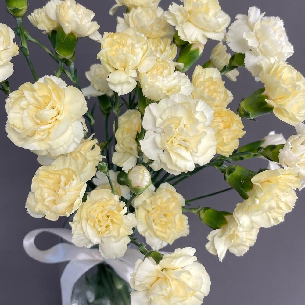 Лента атласная – 1 шт.Кустовая гвоздика – 9 шт.