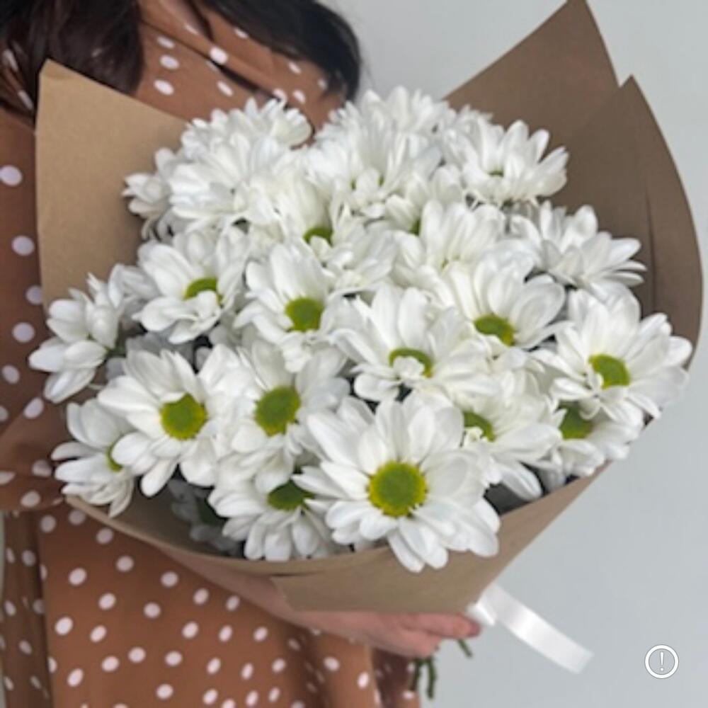 Лента – 1 шт.Хризантема кустовая – 7 шт.Крафт упаковка – 2 шт.