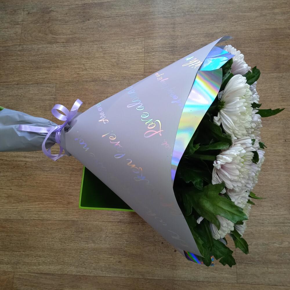 Хризантема одноголовая – 9 шт.Упаковка дизайнерская – 1 шт.