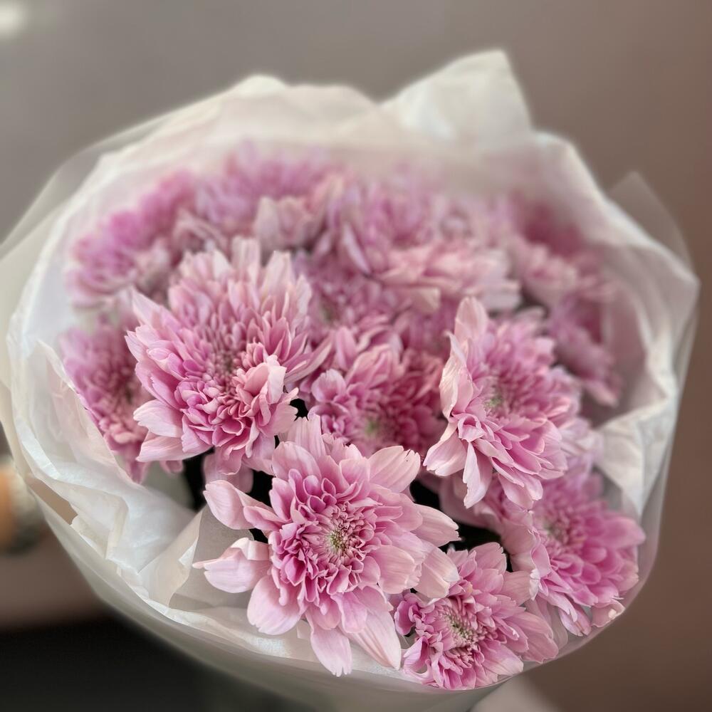 Кустовая хризантема – 3 шт.декоративная упаковка – 1 шт.Атласная лента – 1 шт.