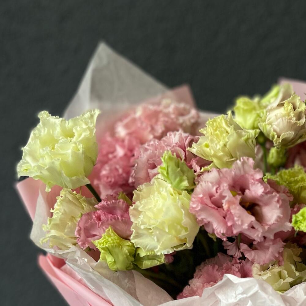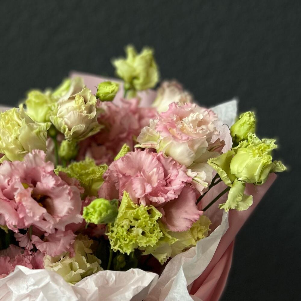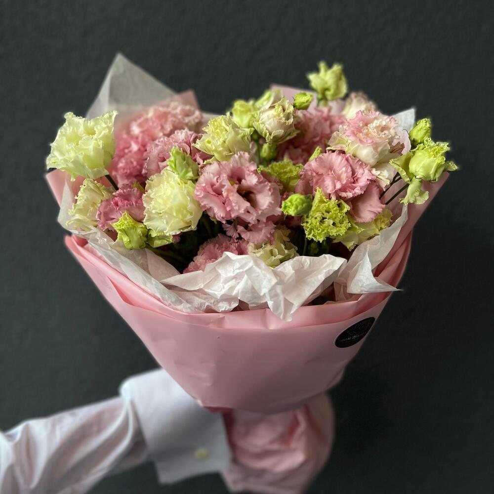 эустома розовая – 7 шт.декоративная упаковка – 1 шт.Атласная лента – 1 шт.