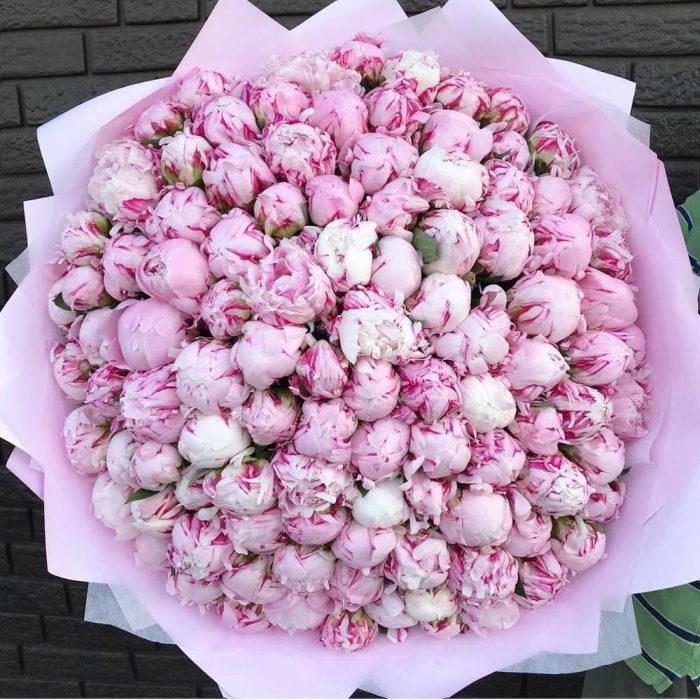 101 пион в многослойной упаковке