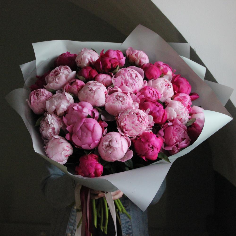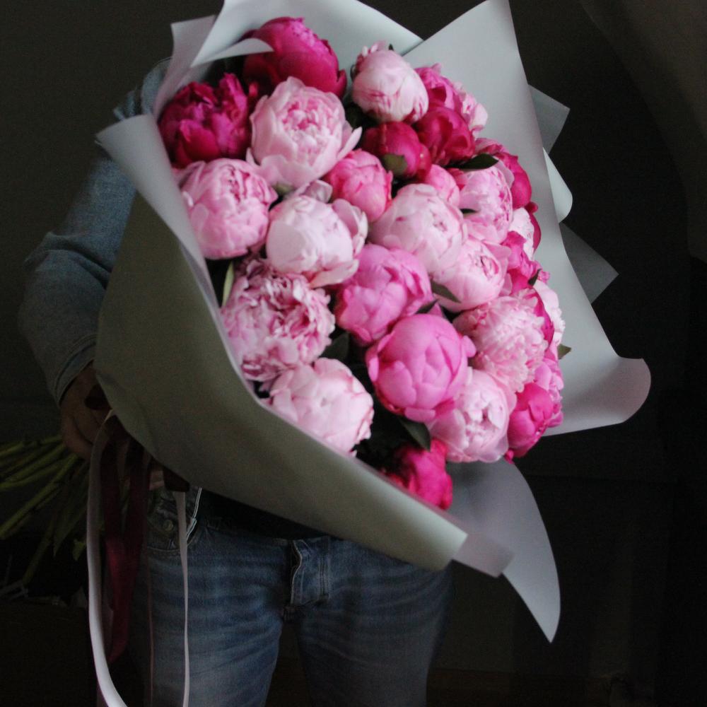 Упаковка – 3 шт.Лента атласная – 2 шт.Пион Голландия – 35 шт.