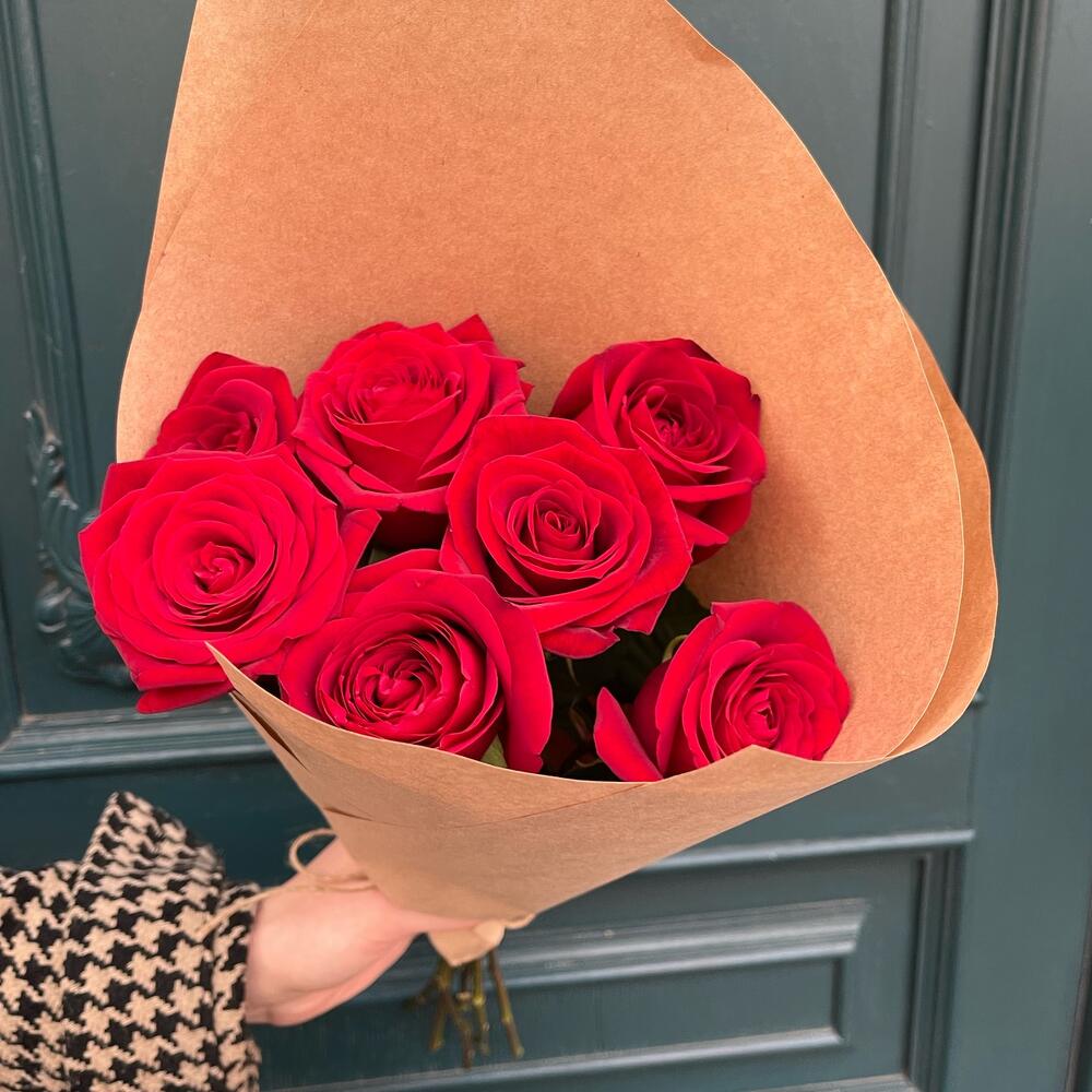 7 красных роз в крафте