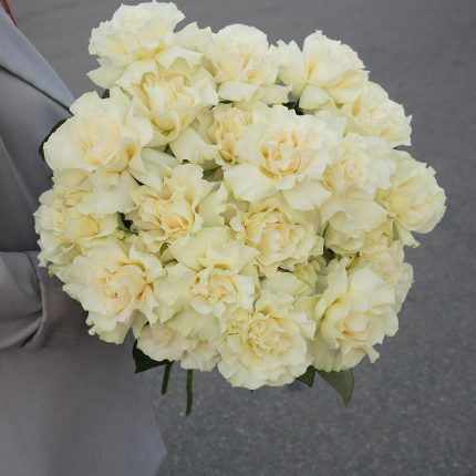 Пышный и ароматный букет из французских роз с эвкалиптом.