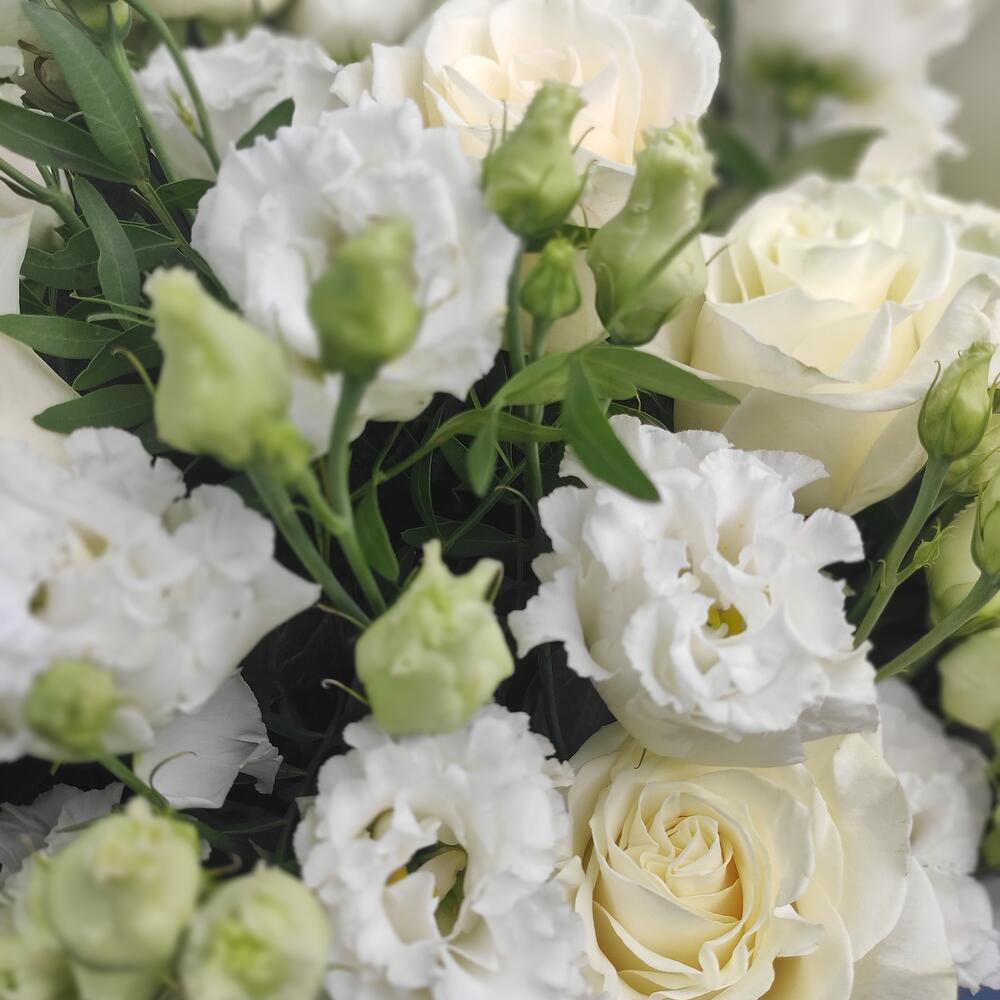 Роза – 9 шт.Эустома – 7 шт.Фисташка – 1 шт.