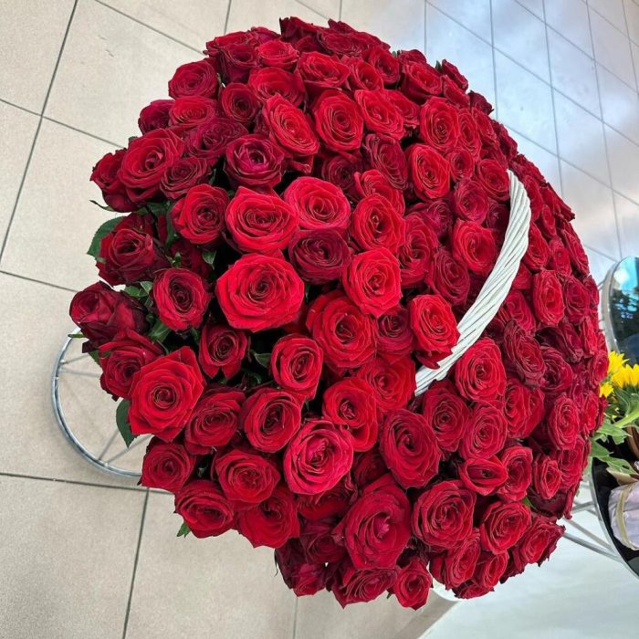 Метки: 151 роза, от 5000 руб, Роза 60 см, Розы в корзине, цветы в корзине