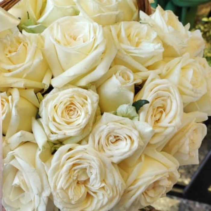 Роза Голландская – 29 шт. Корзина плетеная – 1 шт.