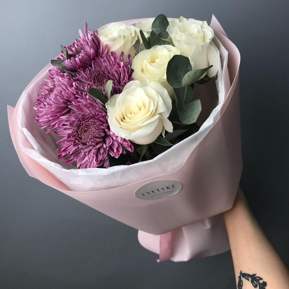 Гвоздики, Кустовые розы, Лизиантусы, Пионовидные розы, Розы