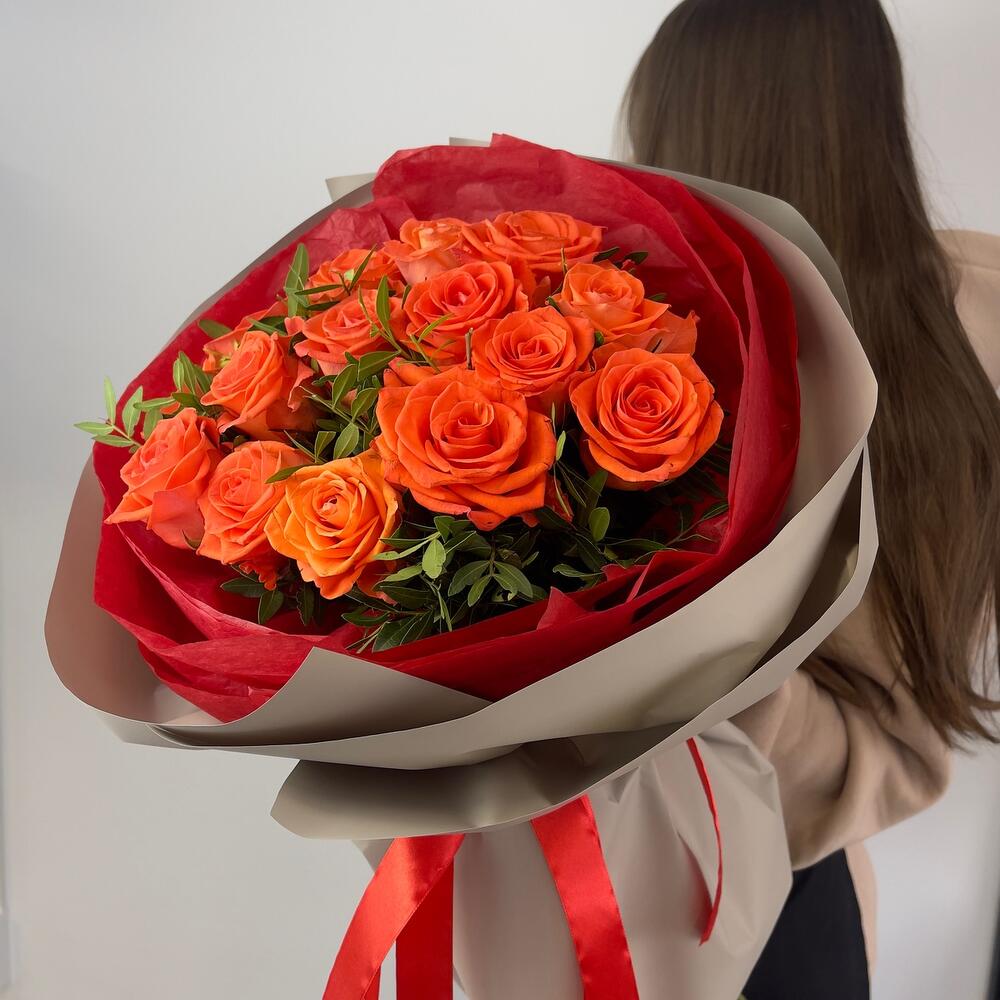 Оранжевые розы в оформлении