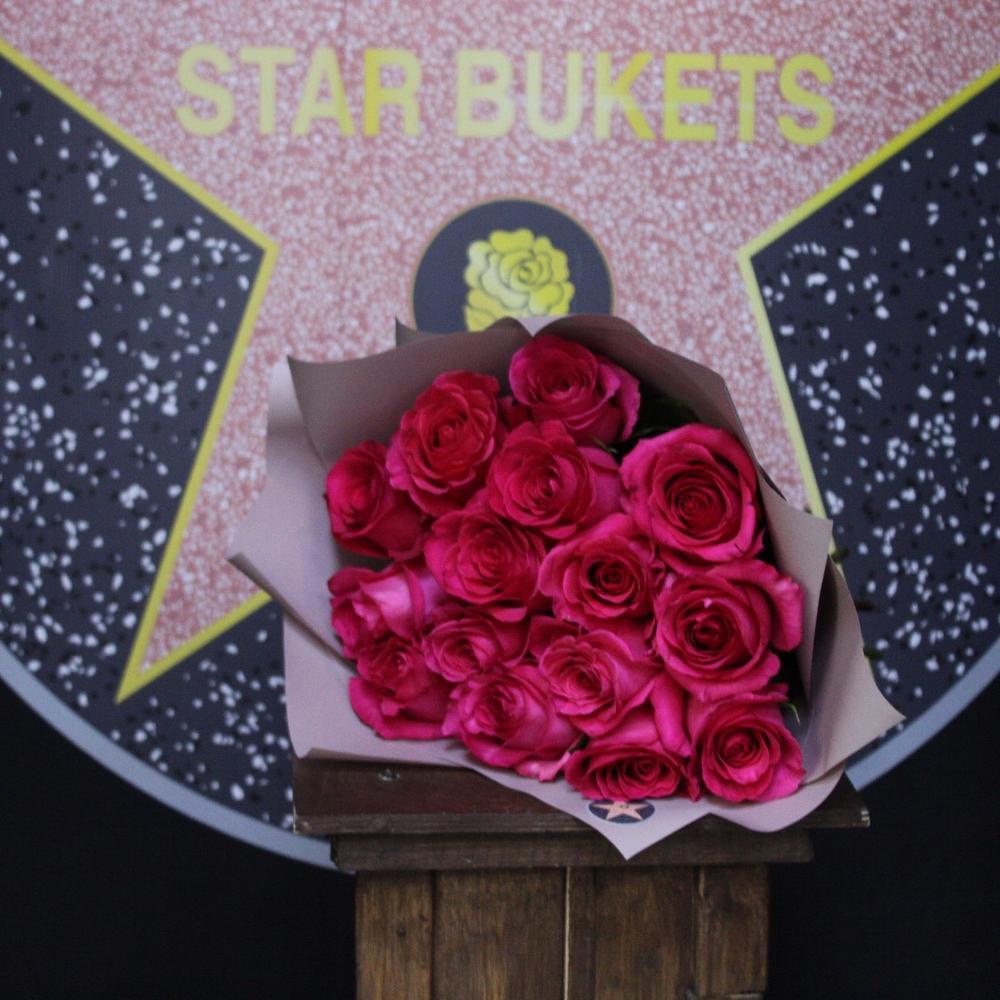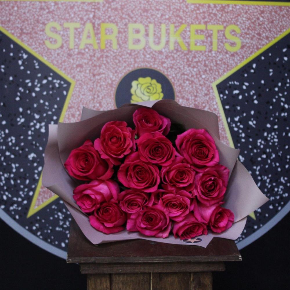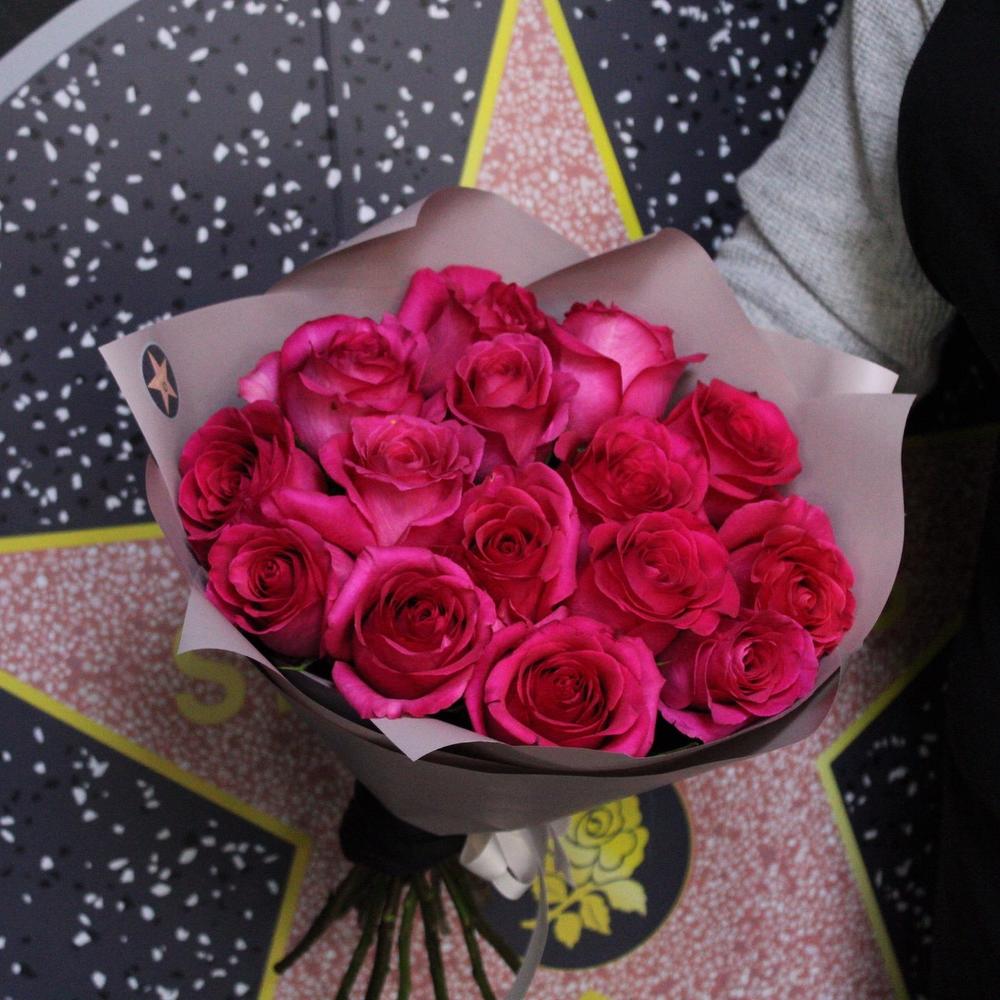 Роза пинк флойл – 15 шт.Пленка дизайнерская – 2 шт.Лента атласная – 1 шт.
