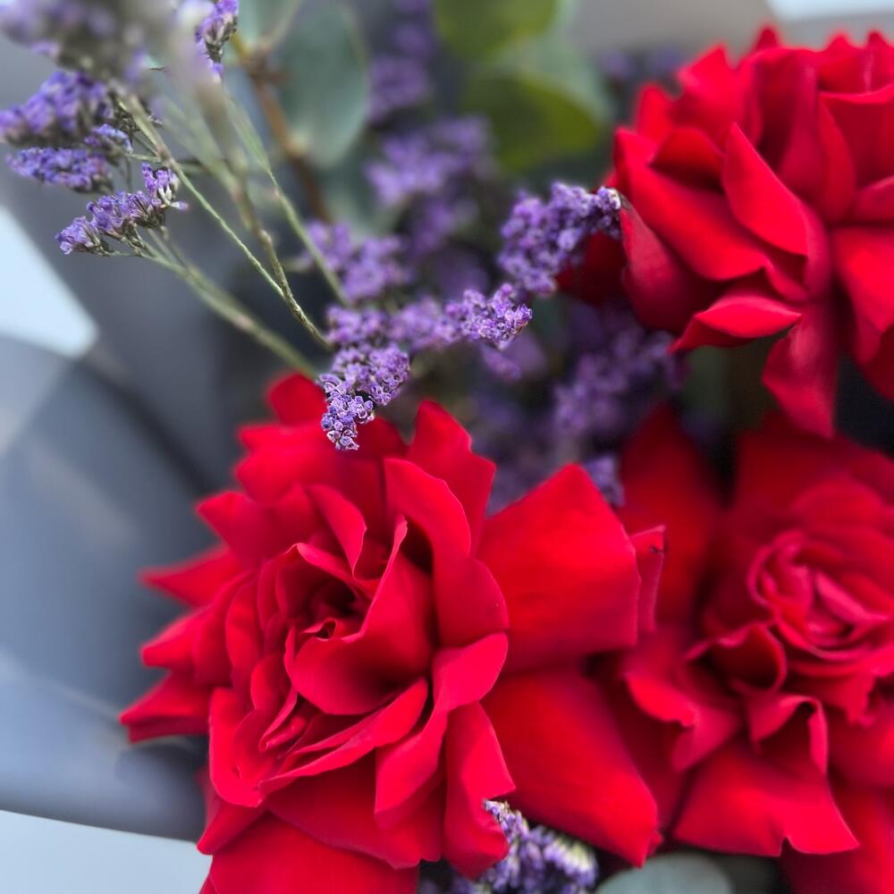 Red (розы, лимониум, эвкалипт)