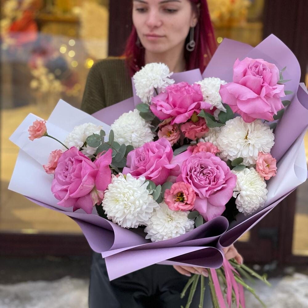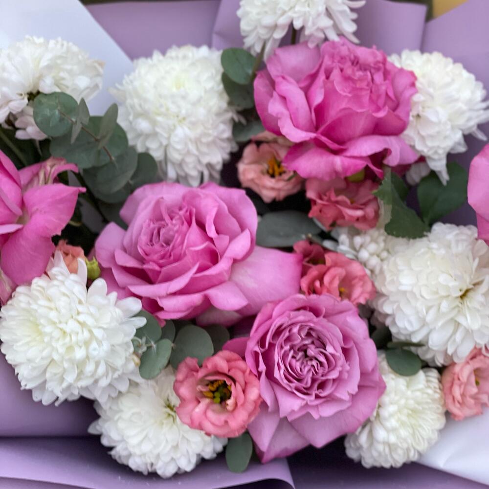Гвоздики, Кустовые розы, Пионовидные розы, Розы