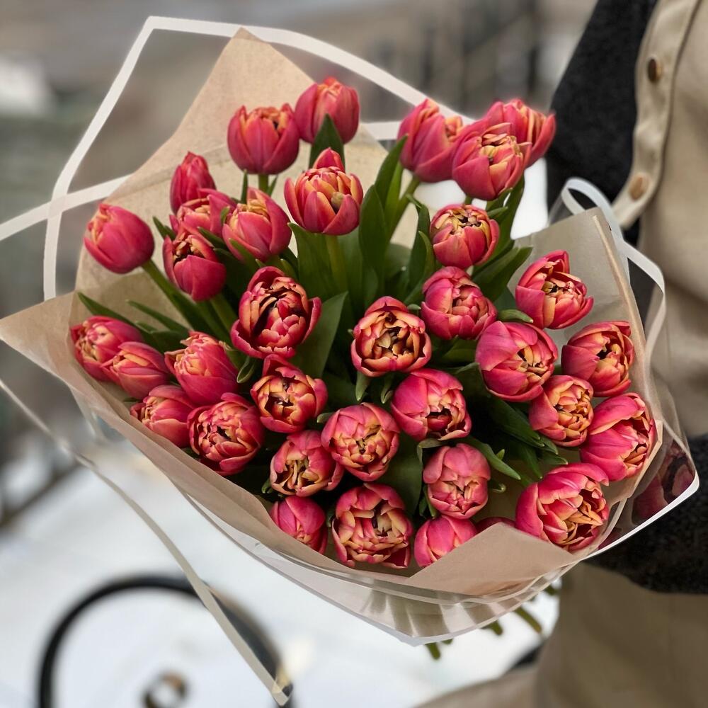 Букет из 35 пионовидных тюльпанов